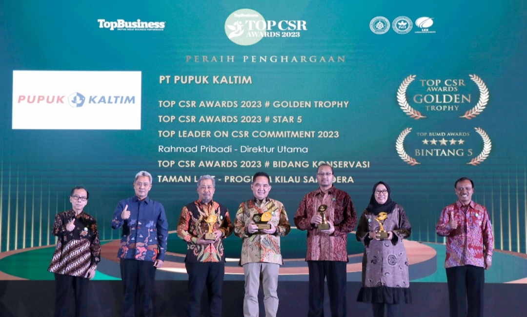 KALTIMNUSANTARA.COM– PT Pupuk Kalimantan Timur (Pupuk Kaltim) raih empat penghargaan TOP CSR Awards 2023 dari majalah TOP Business, atas komitmen realisasi Tanggung Jawab Sosial dan Lingkungan (TJSL) perusahaan di berbagai sektor secara optimal. Penghargaan diterima SEVP Business Support Pupuk Kaltim Meizar Effendi, di Ballroom Rafles Hotel Jakarta, Rabu (7/6/2023).