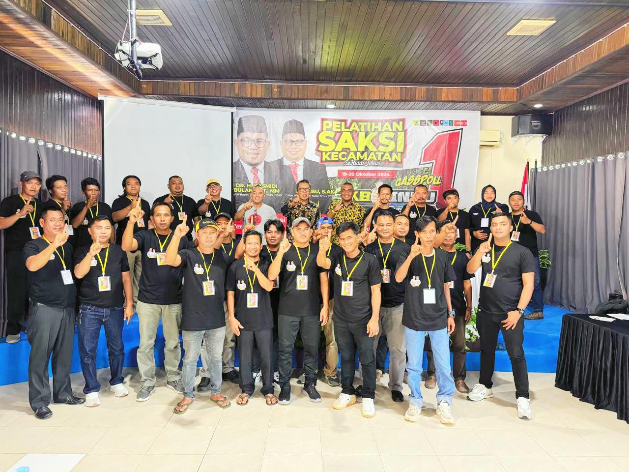 Kegiatan pelatihan yang mengusung tema “Saksi yang kuat KB-KINSU pasti menang” itu diikuti oleh tiga puluh enam peserta dari 18 Kecamatan di Kutai Timur serta kegiatan ini dihadiri dan dibuka langsung oleh Ketua Tim Pemenang KB-KINSU Bapak Alfian Aswad.